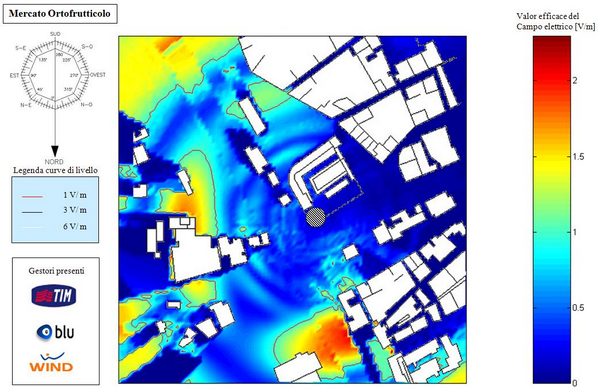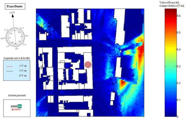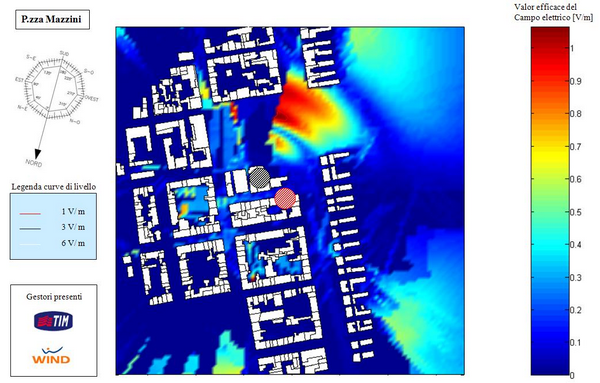 Per lo svolgimento del lavoro sono stati ricostruiti all'interno del software gli scenari relativi ai siti da analizzare e sono state caratterizzate le sorgenti di campo (stazioni radio base) sulla base de datasheets delle case costruttrici e dei dati forniti dai gestori. Le analisi svolte, considerando i raggi diretti, riflessi, diffratti e loro combinazioni di ordine superire, hanno evidenziato il rispetto dei livelli di campo elettrico prevesti dalle normative nella quasi totalità dei casi e portando alla riduzione della potenza emessa da alcuni impianti nei casi di superamento dei limiti.