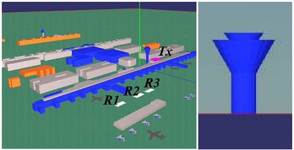 E' stato riprodotto un profilo geometrico di un tipico ambiente aeroportuale semplificato nella forma degli edifici. Nella fattispecie è stato riprodotto l'aeroporto internazionale di Monaco di Baviera, poiché il DLR (centro aerospaziale tedesco) era in grado di fornire i dati di misura, in potenza e spettro ritardo-frequenza Doppler, prelevati in diverse zone dell'aeroporto durante una campagna di misure nel 2007.
