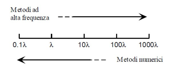 Metodi Numerici - dimensioni elettriche degli oggetti da qualche lunghezza d'onda fino alle decine di lunghezza d'onda: